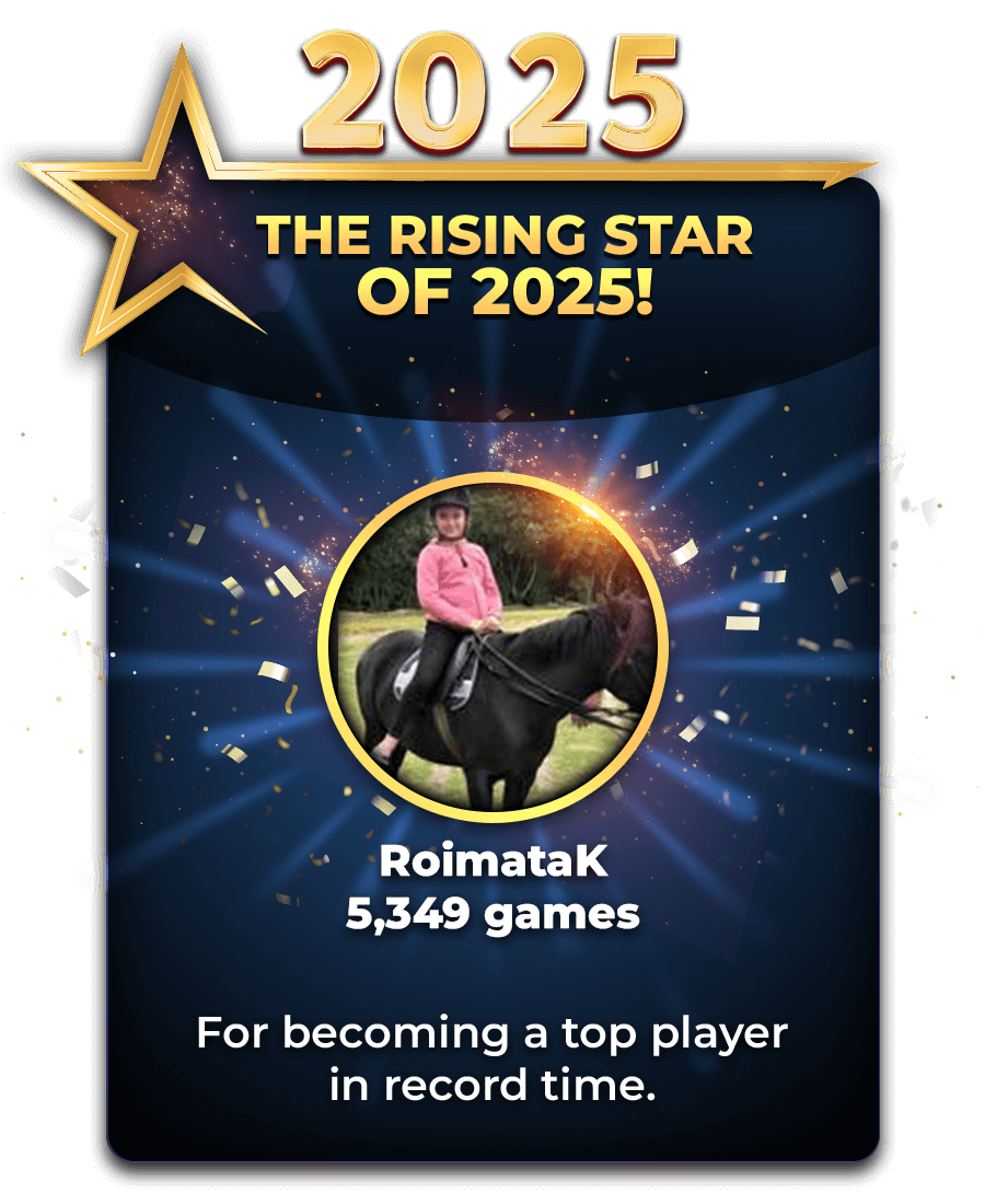 - The Rising Star of 2025! — For the newcomer who took the tables by storm. Awarded to the player registered in 2025 who played the most games this year.