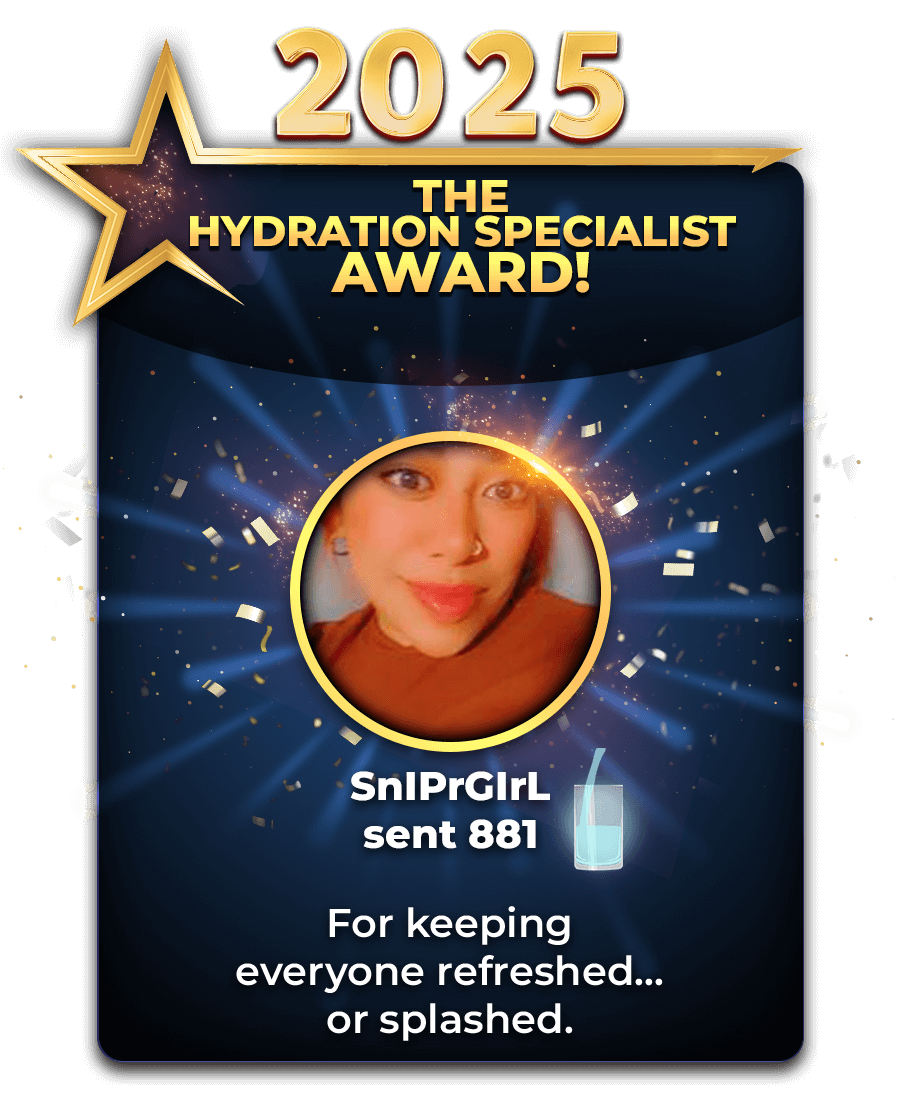 - The Hydration Specialist Award! — For the one keeping everyone refreshed. Awarded to the player who sent the most “glass of water” gifts.