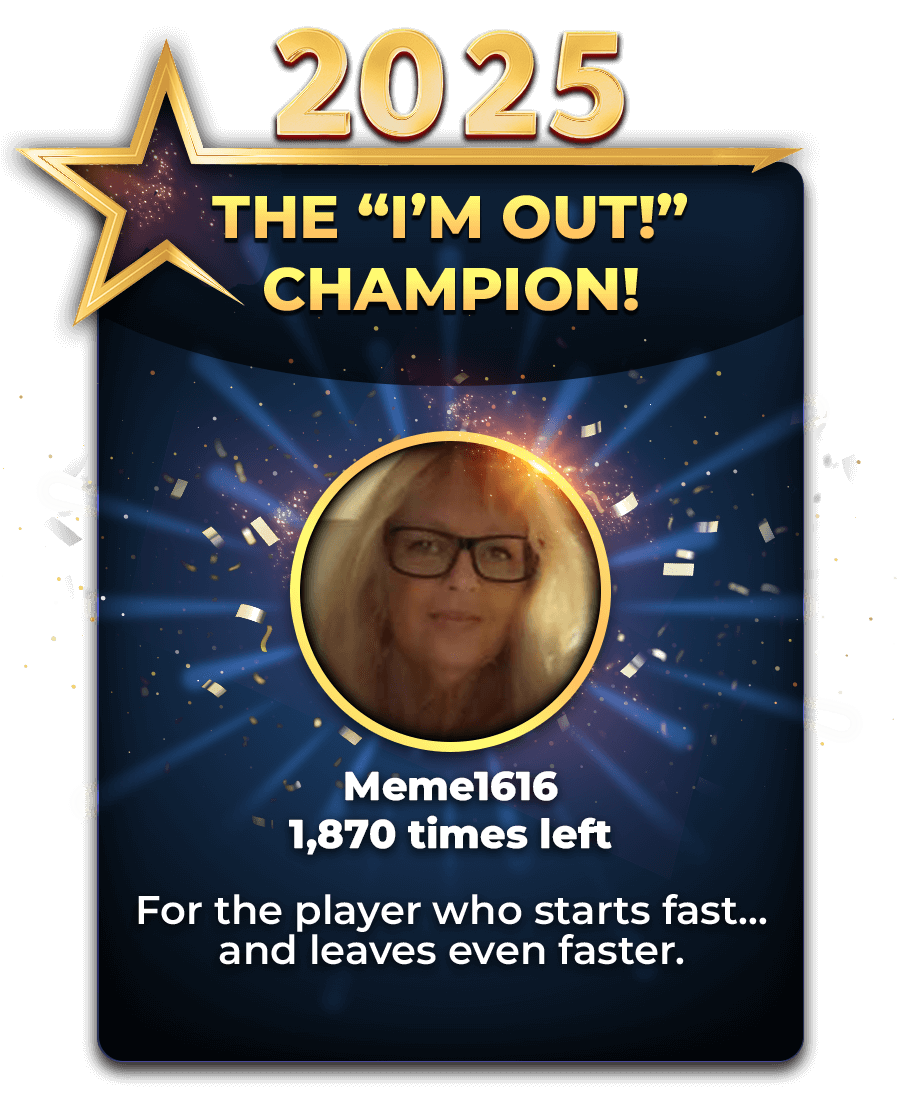 - The “I’m Out!” Champion! — For the player who starts games at lightning speed… and leaves them even faster.